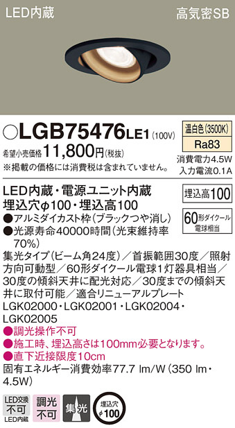 Panasonic ¥À¥¦¥ó¥é¥¤¥È LGB75476LE1
