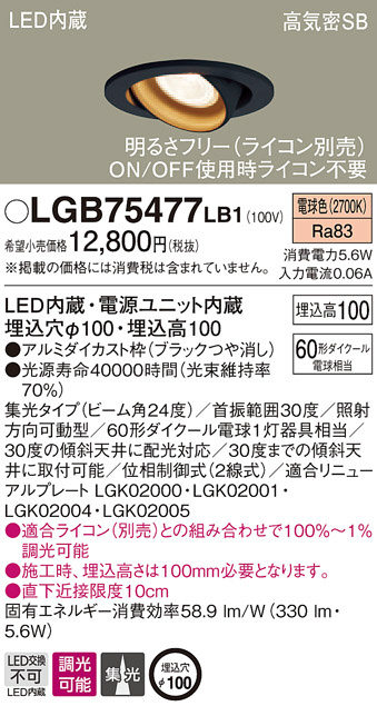 Panasonic ¥À¥¦¥ó¥é¥¤¥È LGB75477LB1