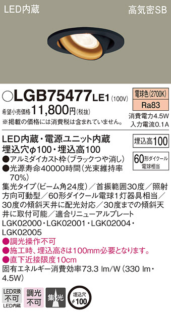 Panasonic ¥À¥¦¥ó¥é¥¤¥È LGB75477LE1
