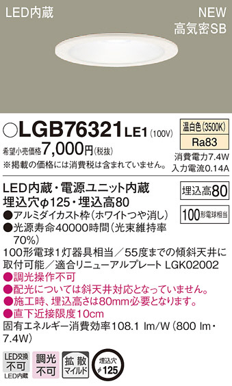 Panasonic ¥À¥¦¥ó¥é¥¤¥È LGB76321LE1