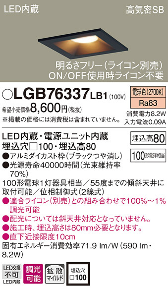 Panasonic ¥À¥¦¥ó¥é¥¤¥È LGB76337LB1