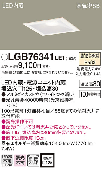 Panasonic ¥À¥¦¥ó¥é¥¤¥È LGB76341LE1