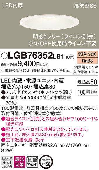 Panasonic ¥À¥¦¥ó¥é¥¤¥È LGB76352LB1