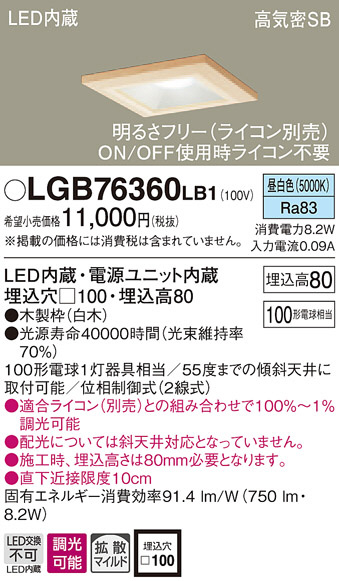 Panasonic ¥À¥¦¥ó¥é¥¤¥È LGB76360LB1