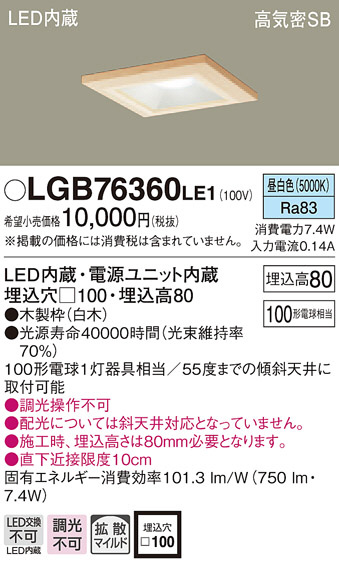 Panasonic ¥À¥¦¥ó¥é¥¤¥È LGB76360LE1