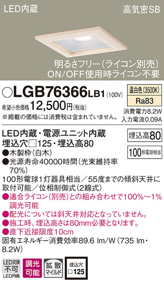 Panasonic ¥À¥¦¥ó¥é¥¤¥È LGB76366LB1