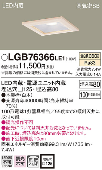 Panasonic ¥À¥¦¥ó¥é¥¤¥È LGB76366LE1