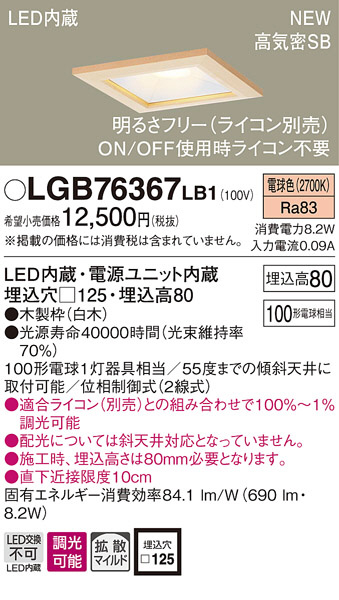 Panasonic ¥À¥¦¥ó¥é¥¤¥È LGB76367LB1
