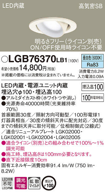 Panasonic ¥À¥¦¥ó¥é¥¤¥È LGB76370LB1