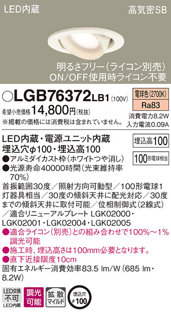 Panasonic ¥À¥¦¥ó¥é¥¤¥È LGB76372LB1