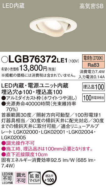 Panasonic ¥À¥¦¥ó¥é¥¤¥È LGB76372LE1