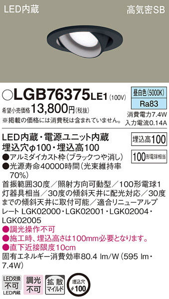 Panasonic ¥À¥¦¥ó¥é¥¤¥È LGB76375LE1