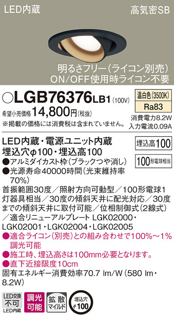 Panasonic ¥À¥¦¥ó¥é¥¤¥È LGB76376LB1