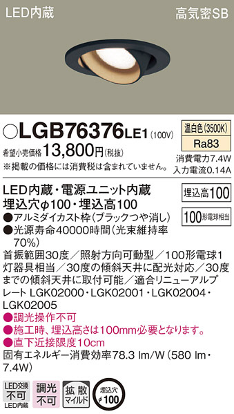Panasonic ¥À¥¦¥ó¥é¥¤¥È LGB76376LE1