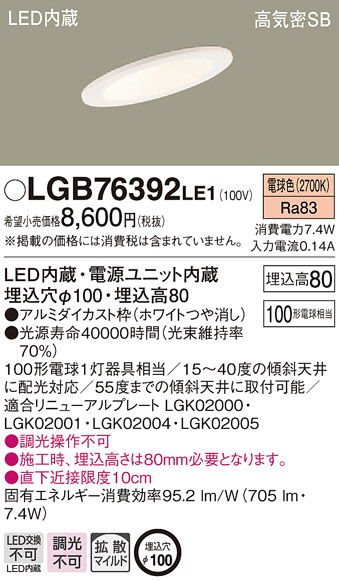 Panasonic ¥À¥¦¥ó¥é¥¤¥È LGB76392LE1