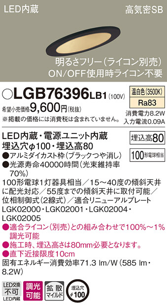 Panasonic ¥À¥¦¥ó¥é¥¤¥È LGB76396LB1