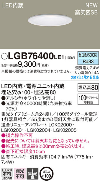 Panasonic LED ¥À¥¦¥ó¥é¥¤¥È LGB76400LE1