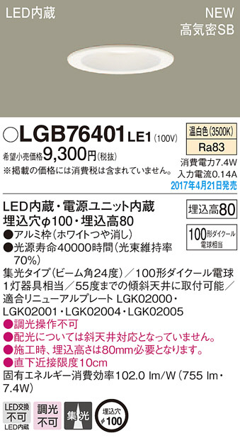 Panasonic LED ¥À¥¦¥ó¥é¥¤¥È LGB76401LE1