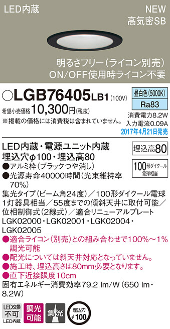 Panasonic LED ¥À¥¦¥ó¥é¥¤¥È LGB76405LB1
