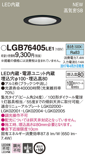 Panasonic LED ¥À¥¦¥ó¥é¥¤¥È LGB76405LE1