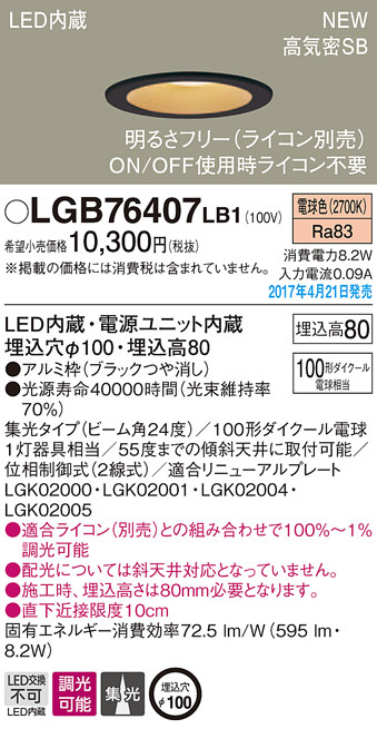 Panasonic LED ¥À¥¦¥ó¥é¥¤¥È LGB76407LB1