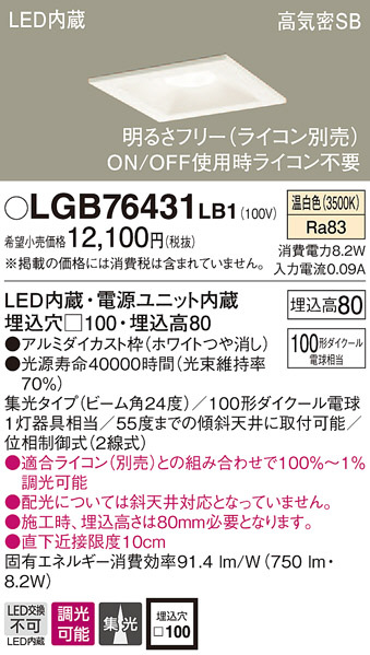 Panasonic ¥À¥¦¥ó¥é¥¤¥È LGB76431LB1