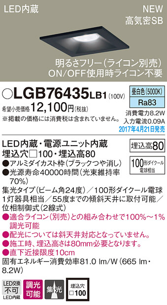 Panasonic LED ¥À¥¦¥ó¥é¥¤¥È LGB76435LB1