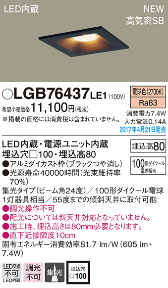 Panasonic LED ¥À¥¦¥ó¥é¥¤¥È LGB76437LE1