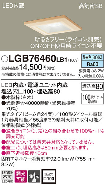 Panasonic ¥À¥¦¥ó¥é¥¤¥È LGB76460LB1