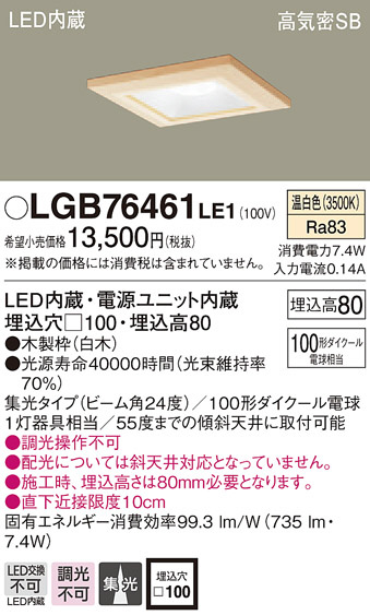 Panasonic ¥À¥¦¥ó¥é¥¤¥È LGB76461LE1