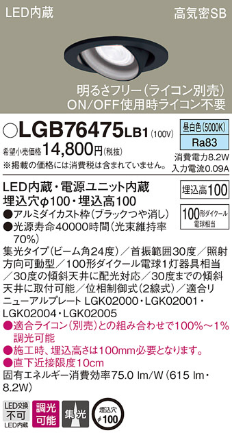 Panasonic ¥À¥¦¥ó¥é¥¤¥È LGB76475LB1
