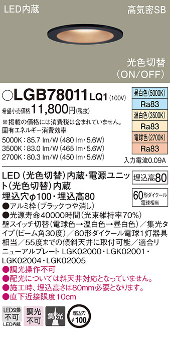 Panasonic ¥À¥¦¥ó¥é¥¤¥È LGB78011LQ1