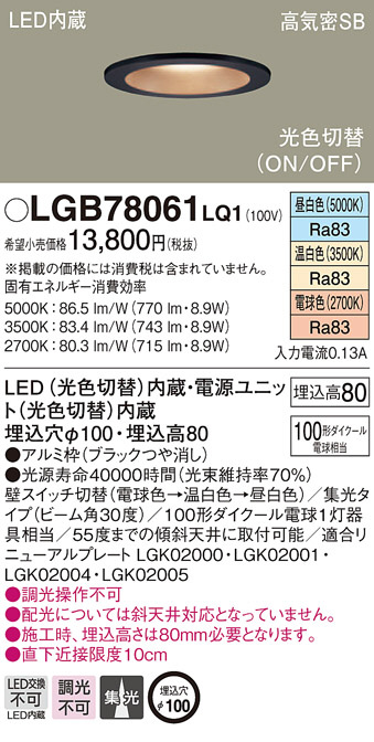 Panasonic ¥À¥¦¥ó¥é¥¤¥È LGB78061LQ1