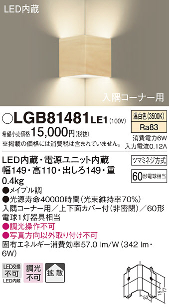 Panasonic ¥Ö¥é¥±¥Ã¥È LGB81481LE1