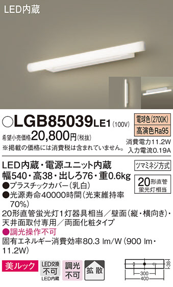 Panasonic ¥Ö¥é¥±¥Ã¥È LGB85039LE1