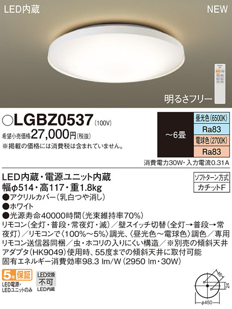 Panasonic LED ¥·¡Ý¥ê¥ó¥°¥é¥¤¥È LGBZ0537