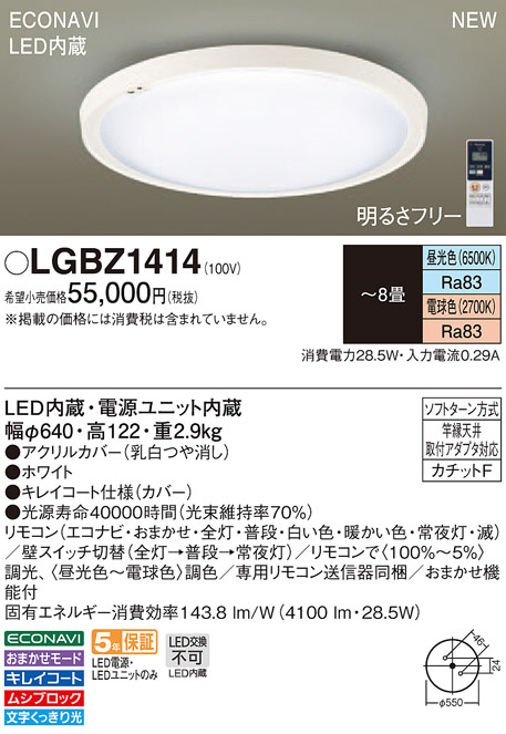 Panasonic LED ¥·¡Ý¥ê¥ó¥°¥é¥¤¥È LGBZ1414