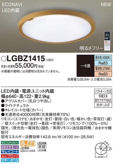 Panasonic LED ¥·¡Ý¥ê¥ó¥°¥é¥¤¥È LGBZ1415