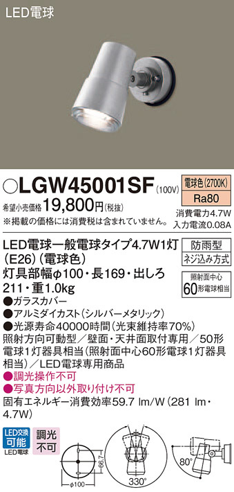 Panasonic ¥¨¥¯¥¹¥Æ¥ê¥¢¥¹¥Ý¥Ã¥È¥é¥¤¥È LGW45001SF