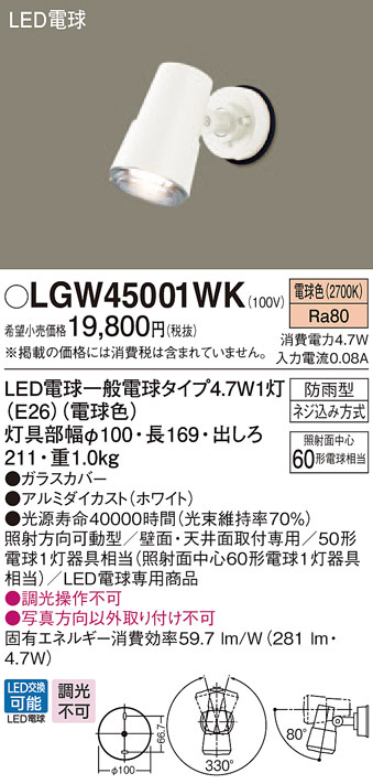 Panasonic ¥¨¥¯¥¹¥Æ¥ê¥¢¥¹¥Ý¥Ã¥È¥é¥¤¥È LGW45001WK