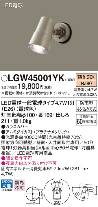 Panasonic ¥¨¥¯¥¹¥Æ¥ê¥¢¥¹¥Ý¥Ã¥È¥é¥¤¥È LGW45001YK