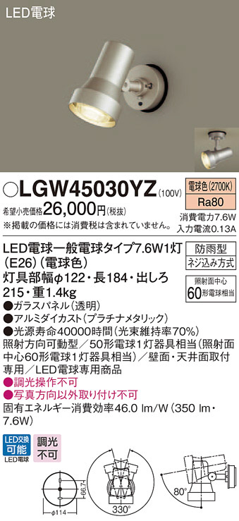 Panasonic ¥¨¥¯¥¹¥Æ¥ê¥¢¥é¥¤¥È LGW45030YZ