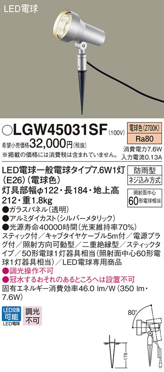 Panasonic ¥¨¥¯¥¹¥Æ¥ê¥¢¥é¥¤¥È LGW45031SF