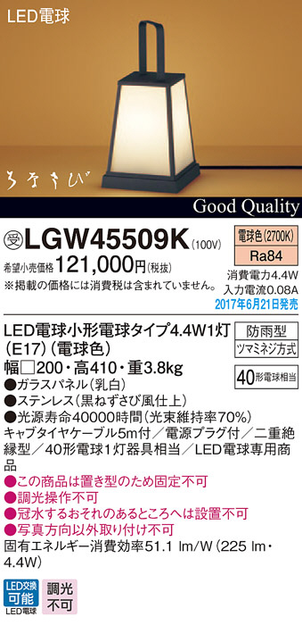 Panasonic LED ¥¨¥¯¥¹¥Æ¥ê¥¢¡¦¥¢¥¦¥È¥É¥¢ LGW45509K