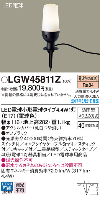 Panasonic LED ¥¨¥¯¥¹¥Æ¥ê¥¢¡¦¥¢¥¦¥È¥É¥¢ LGW45811Z