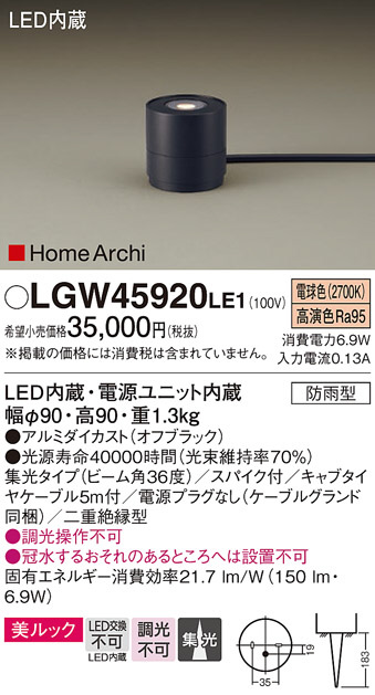 Panasonic ¥¨¥¯¥¹¥Æ¥ê¥¢¥é¥¤¥È LGW45920LE1