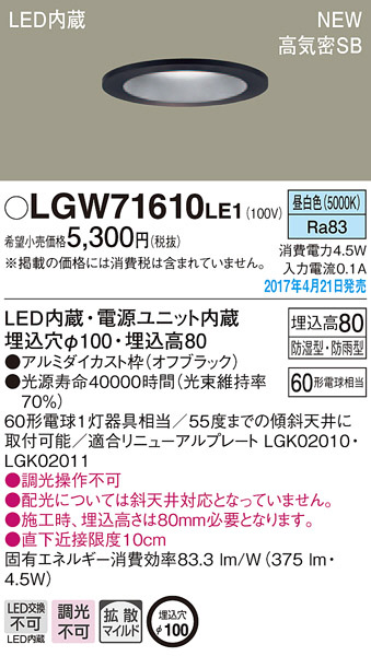 Panasonic LED ¥À¥¦¥ó¥é¥¤¥È LGW71610LE1
