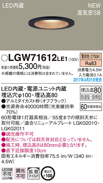 Panasonic LED ¥À¥¦¥ó¥é¥¤¥È LGW71612LE1