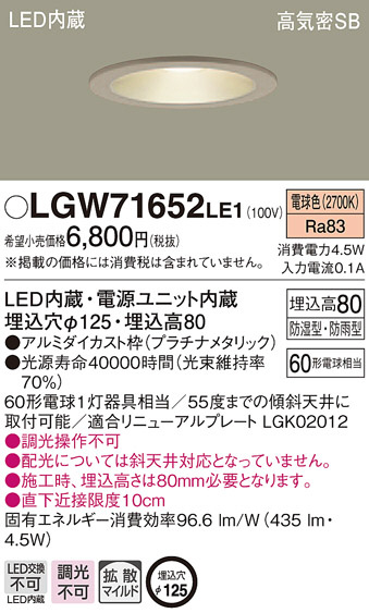 Panasonic ¥À¥¦¥ó¥é¥¤¥È LGW71652LE1