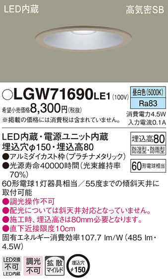 Panasonic ¥À¥¦¥ó¥é¥¤¥È LGW71690LE1